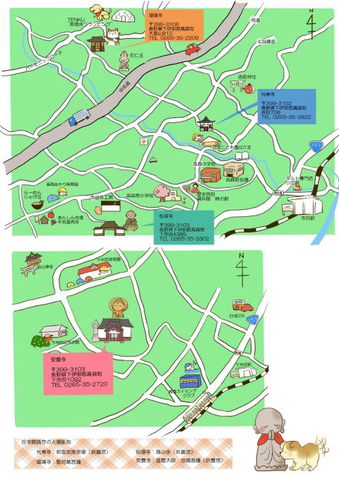 高森町の四寺院にて同時開催致します。ぜひ、お気軽にお越しください。